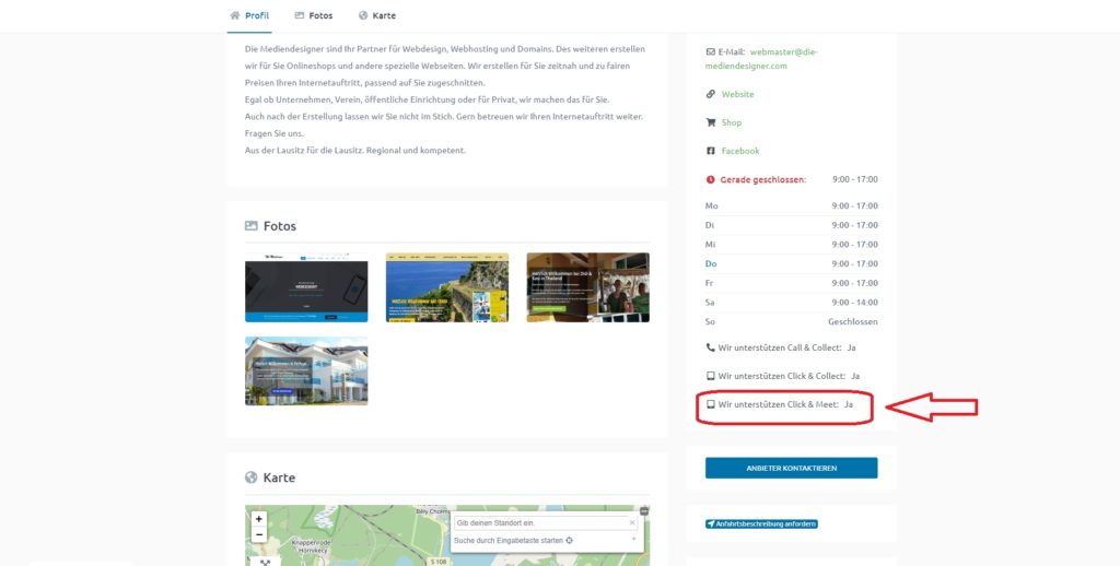 Wie erkenne ich hier, ob ein Anbieter Click & Meet anbietet?